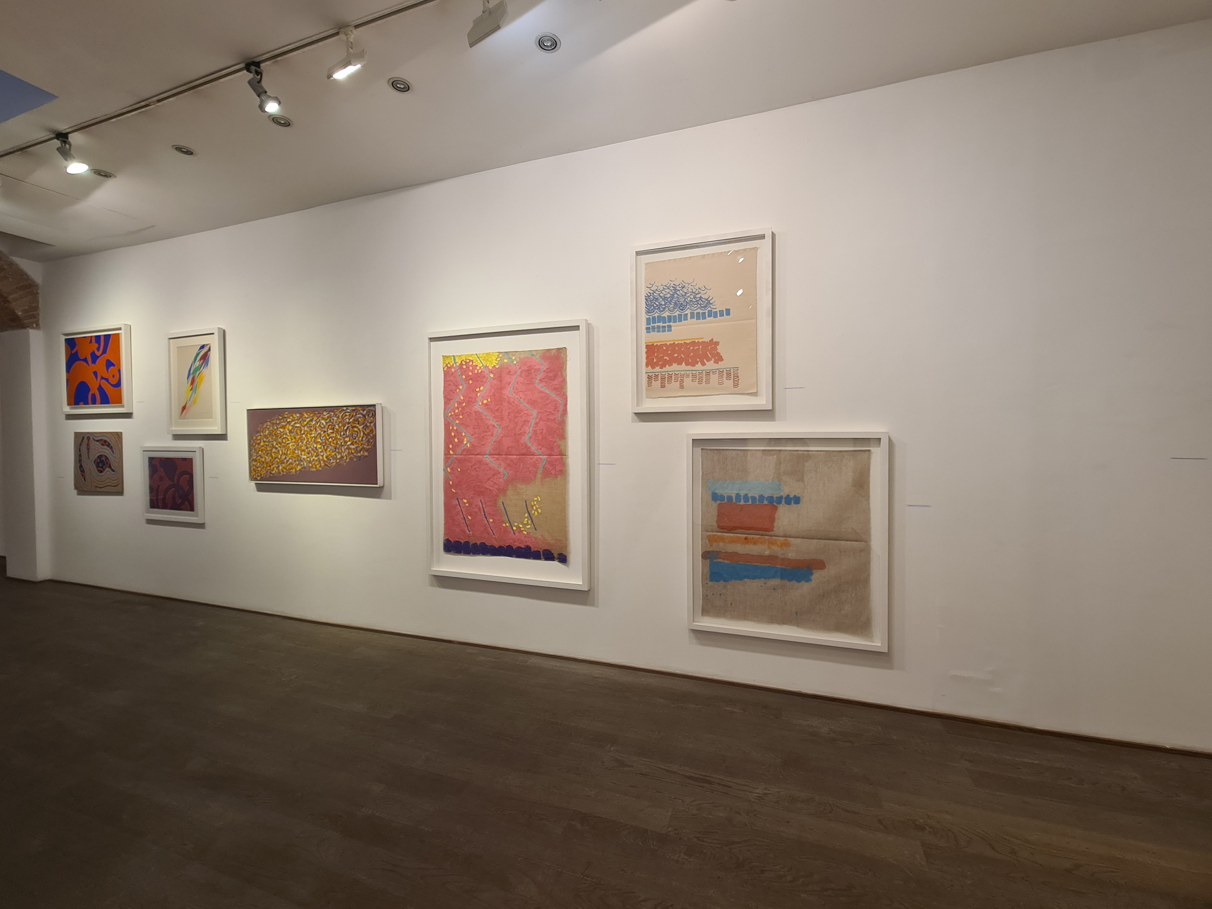 In ogni suo lavoro non riempie mai la tela e ciò mentre da un lato lascia spazio all’immaginazione, dall’altro rende ogni opera la continuazione ideale della precedente. Le sue opere astratte sono quindi riconoscibili per le tele grezze, non dimensionate e non tese che lavora a terra, poi fissate al muro con una serie di chiodi lungo il bordo superiore.