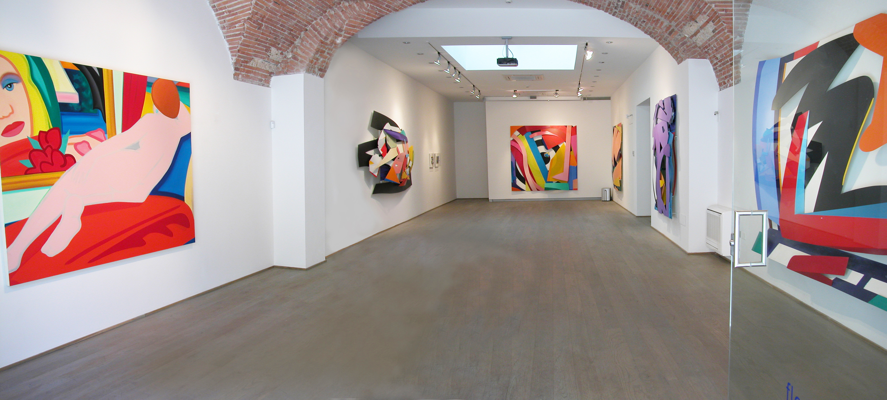 Tom Wesselmann first solo exhibition with the ”Great American Nudes” took place in New York in 1961. From the sixties to his last work, the artist has been faithful to his “line”, but with interesting variations and in the seventies he became famous with the ”Still Life” series. Always in flat backgrounds and juxtapositions of color, Tom Wesselmann represented common objects of American life, such as beer boxes, radios, drink bottles, cigarette packs, fake facades of buildings, all “taken” from huge street advertising billboards. These works, compared to the ”Great American Nudes”, colder and deliberately impersonal, are examples of an artistic interpretation of the popular American consumerism. Then came the ”Smokers”, gigantic female lips with lit smoking cigarettes hanging from them. Since 1985, Tom Wesselmann used lasers to engrave his designs on aluminum plates cut and polished with colored watermarks. Of course Wesselmann's bibliography is long; his solo exhibitions number in the hundreds and his fame has spread all over the world for decades.